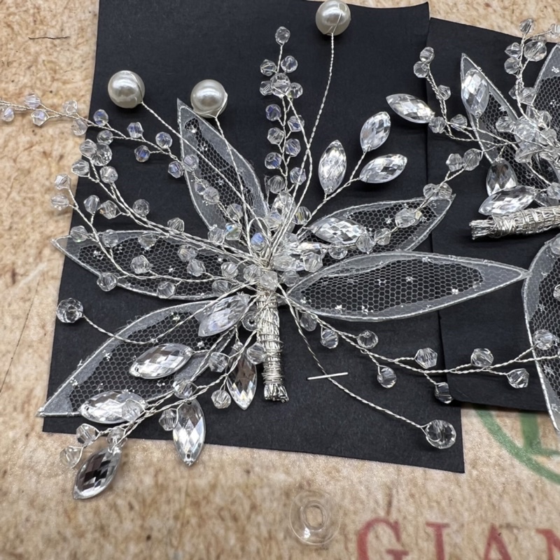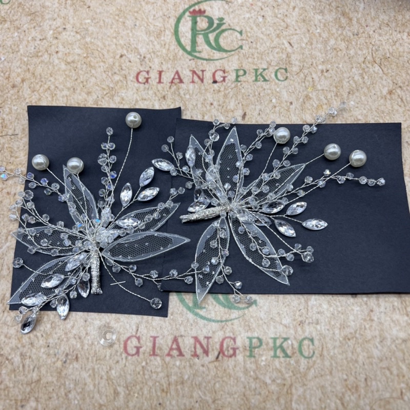 Bộ đôi cài tóc lá ren đính pha lê hạt trai mẫu mới T5/2022 Giangpkc có bán lẻ 1 cái