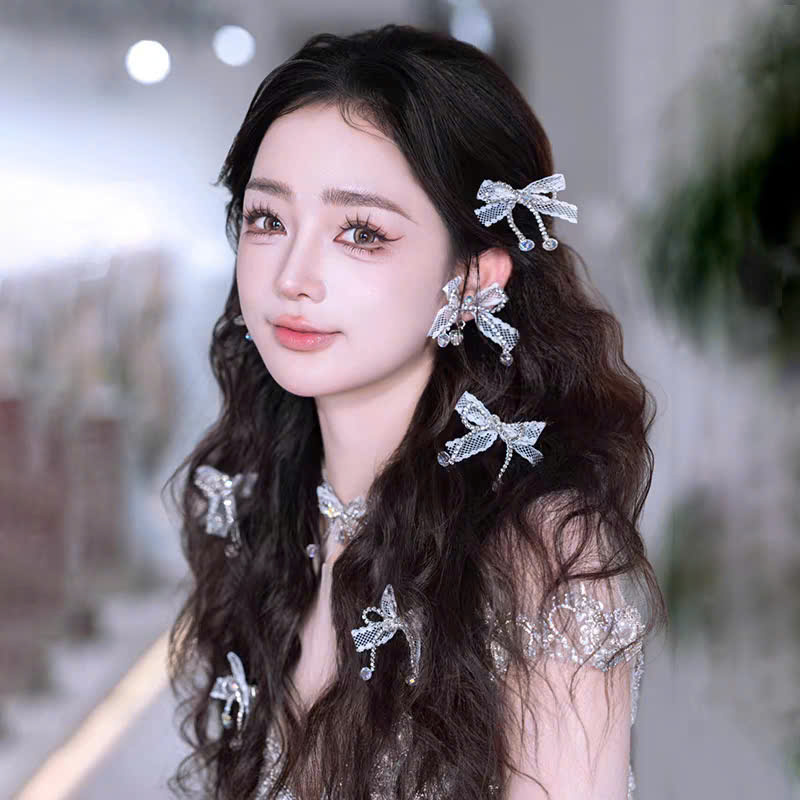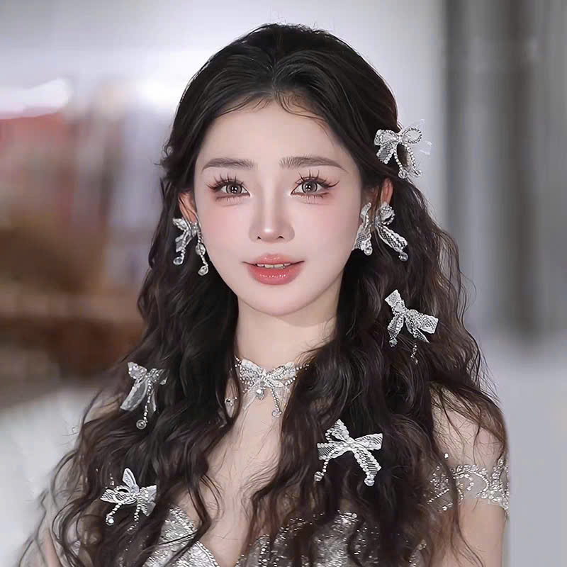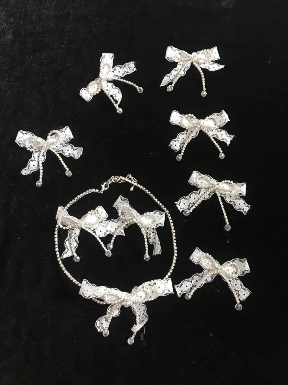 Bộ nơ cài tóc cô dâu đính đá gồm 5 nơ bông tai và bộ dây cổ ren mới 2025 giangpkc-phu-kien-thoi-trang