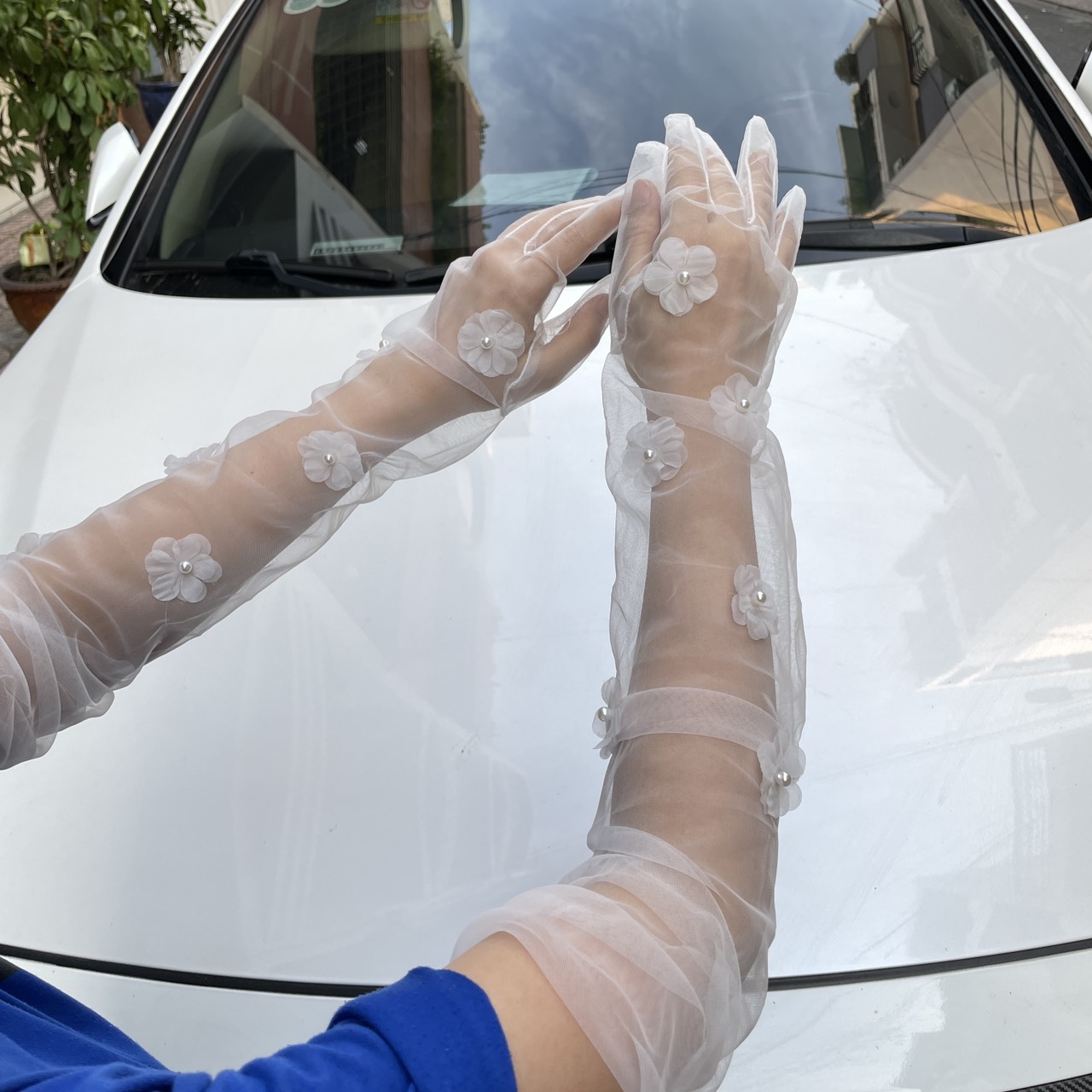 Găng tay voan cô dâu đính hoa hạt trai mẫu mới 2024 Giangpkc giangpkc-phu-kien-thoi-trang