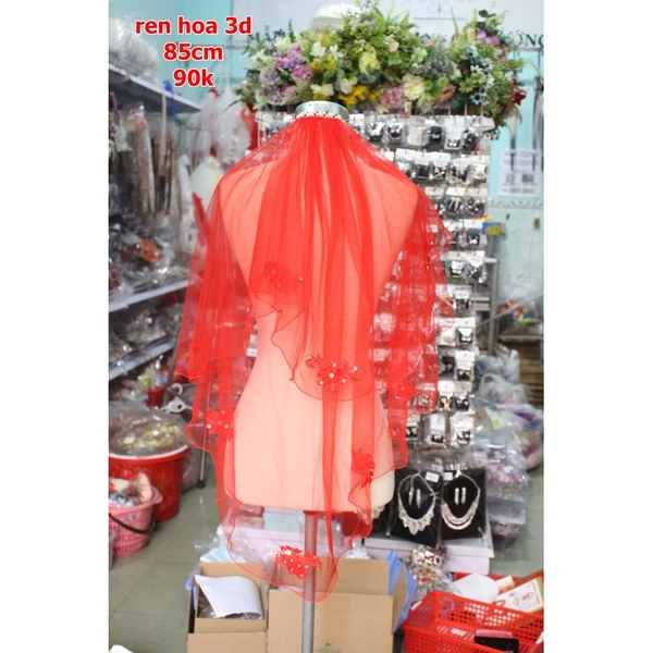 - Viền ren bên ngoài voan cưới màu đỏ để tăng thêm sự sang trọng.