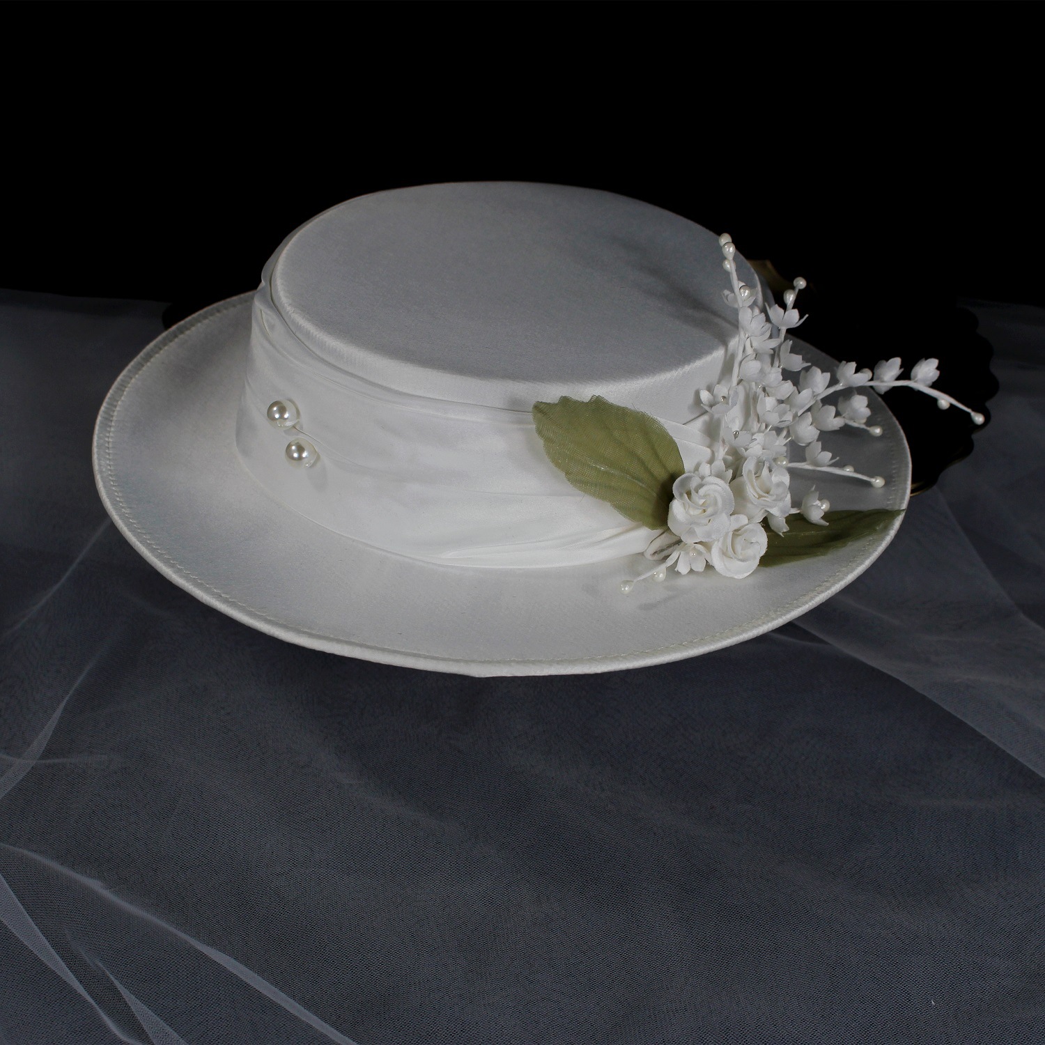 Nón chụp hình cô dâu rộng vành 29cm-31cm trắng đính hoa linh lan Giangpkc 2023 giangpkc-phu-kien-thoi-trang SP2222526