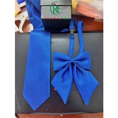 Set nơ nữ kèm cà vạt nam 8cm cùng màu Giangpkc - Set xanh bích